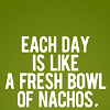 Description: green background with "every day is like a fresh bowl of nachos" on it